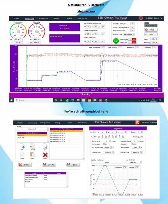 | Control system | Temperature / Humidity control type of PLC with PC software |